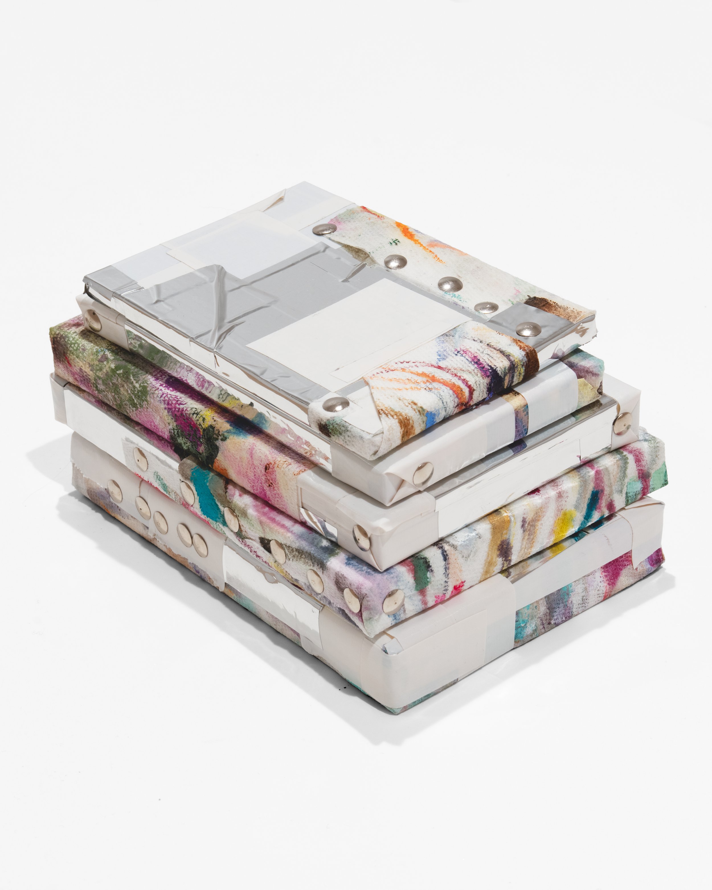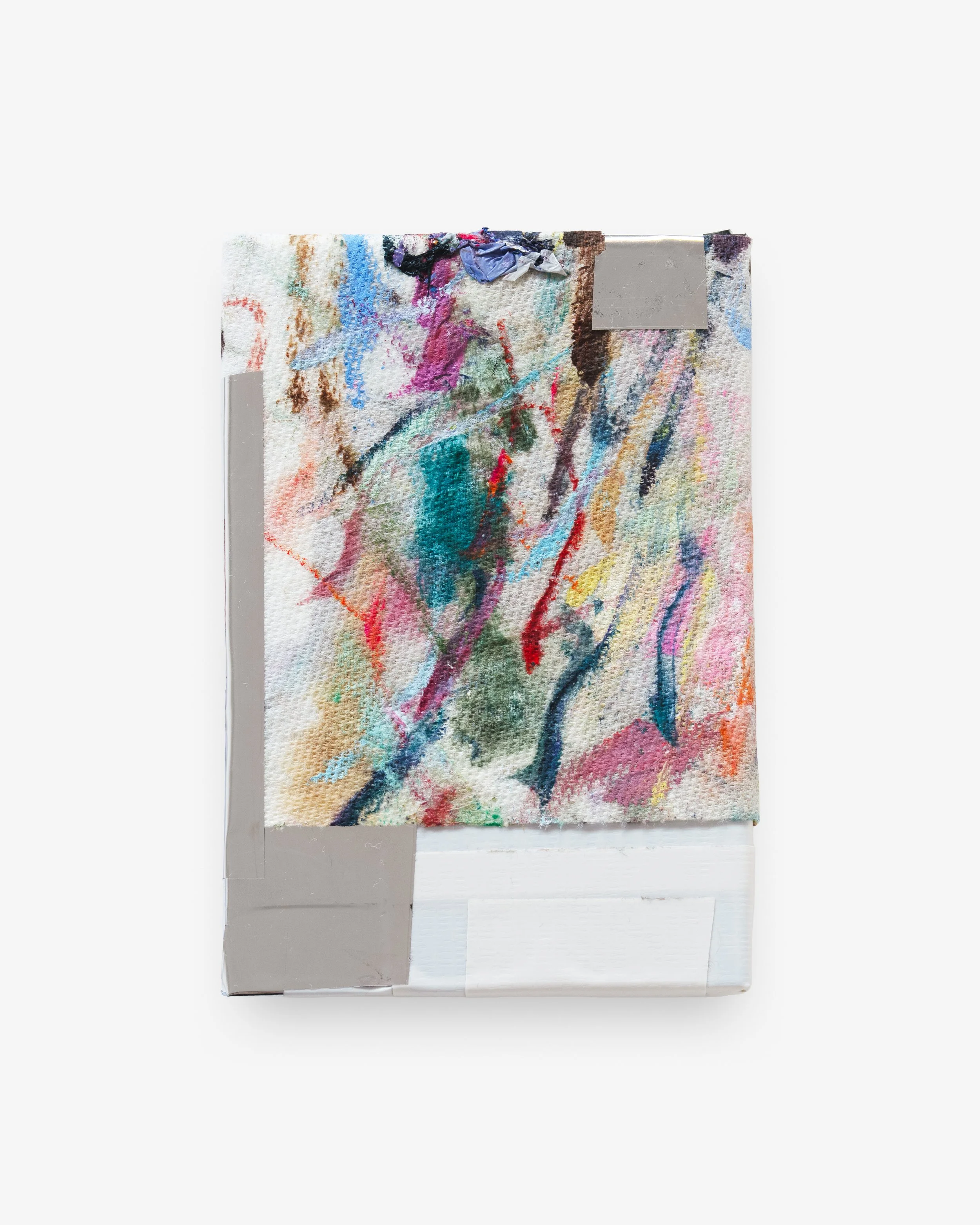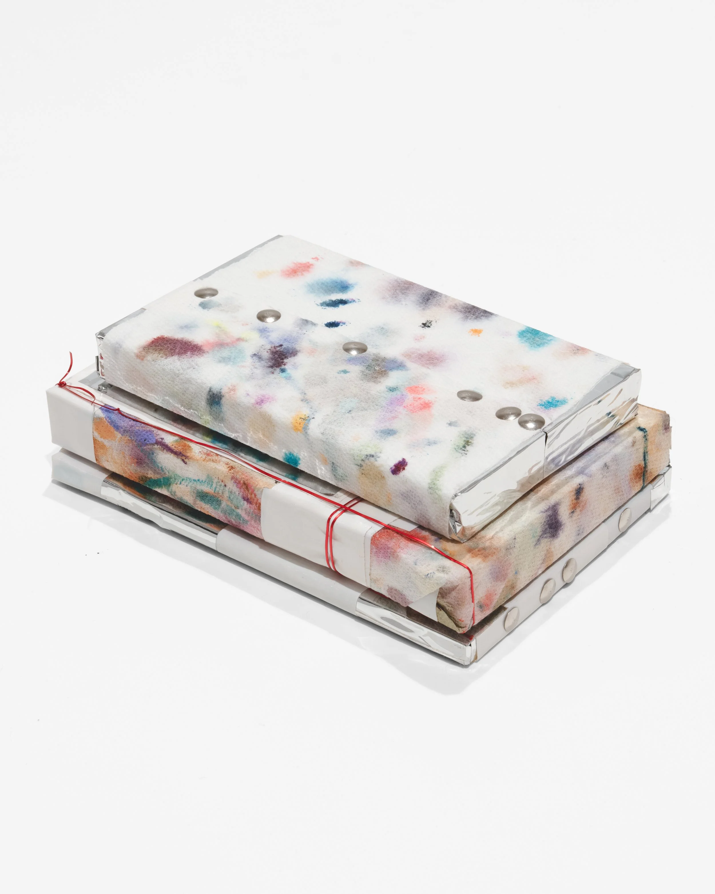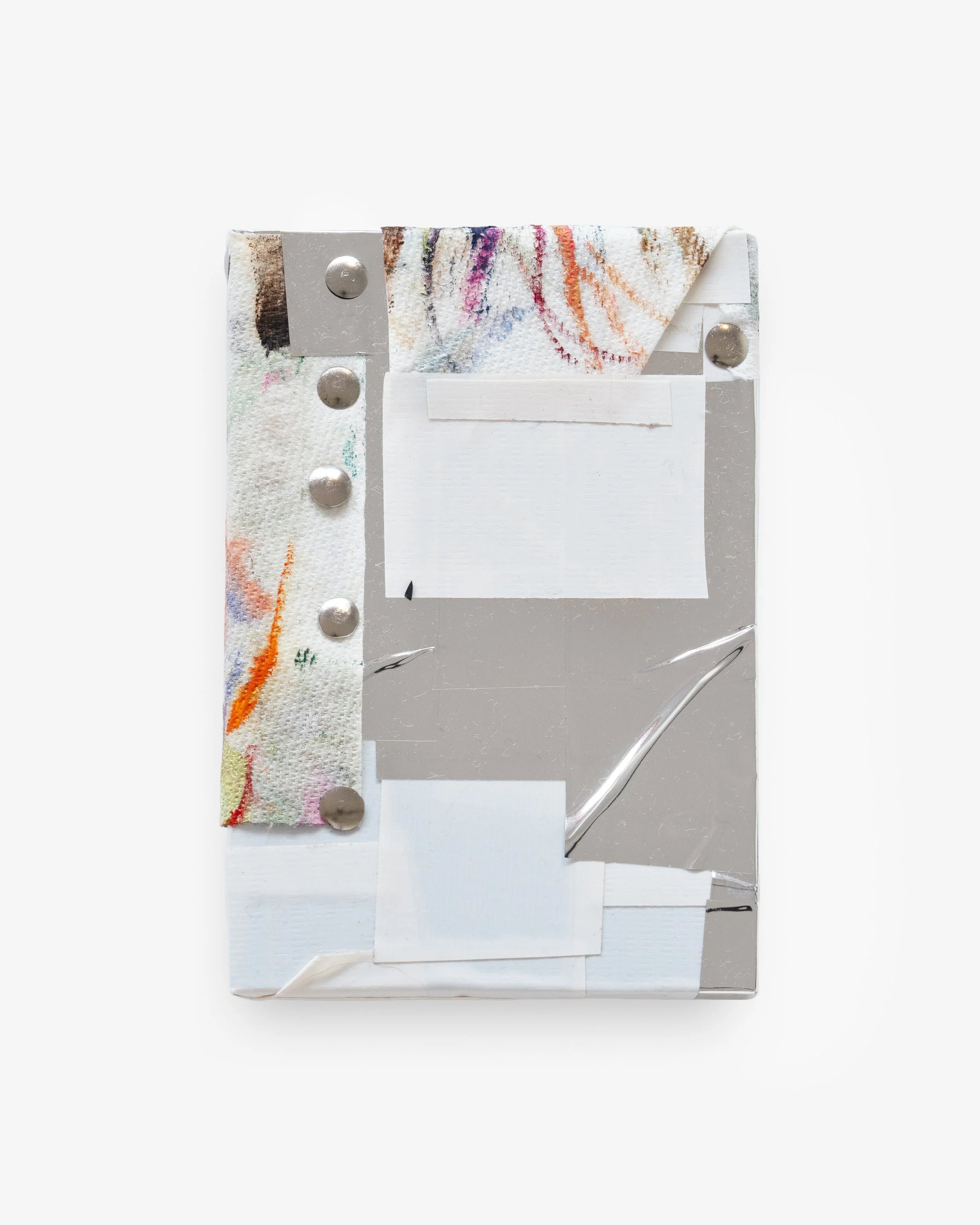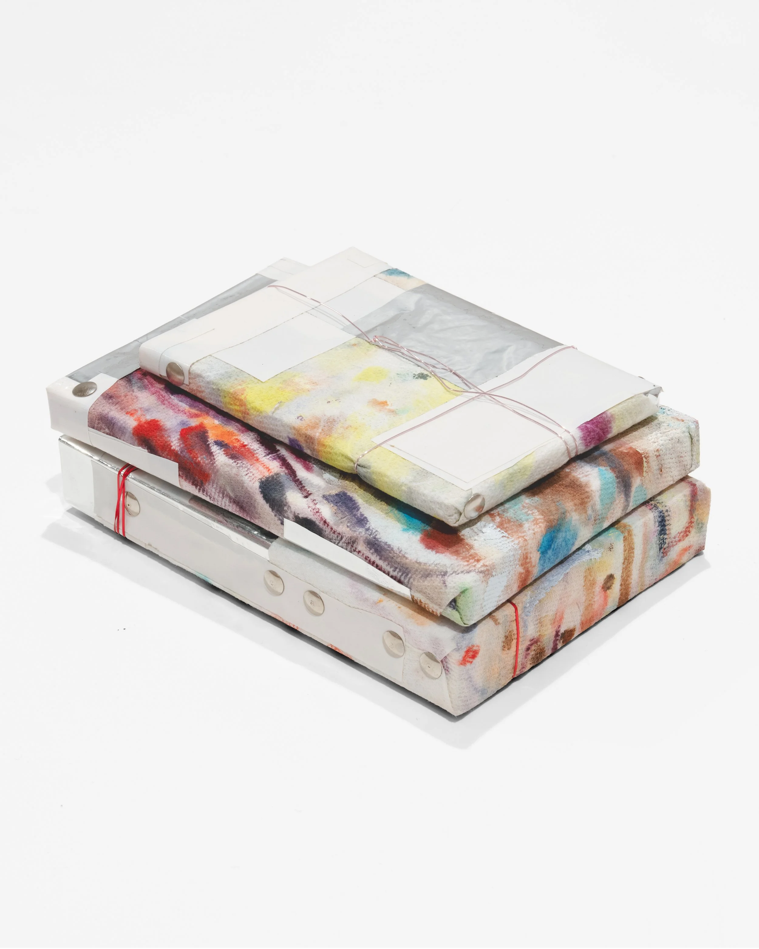 Book, paper towel, tape, pins, wire
